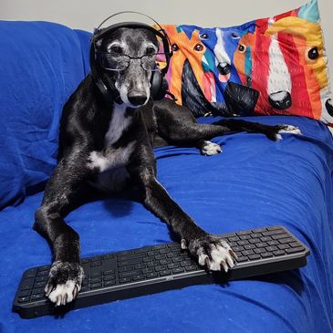 Professor Poppy is our therapy greyhound and is often seen in the background of video consultations.